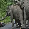 Bir araç kamerası tarafından kaydedilen görüntülerde, Ulusal Park’ta ilerleyen bir motosikletlinin fillerin yolda olduğunu fark etmesi üzerine önce durduğu ve daha sonra yanlarından usulca geçmeye çalıştığı görülüyor. Motosikletlinin yanlarından geçtiği sırada sürüdeki bir fil yüksek ses çıkartarak sürücünün üzerine doğru yürüyor. Diğer fillerin de motosikletlinin üzerine doğru yürümesiyle motordan inen şahıs ellerini kaldırarak ‘Yapmayın’ gibi bir harekette bulunuyor. Öfkeli filler ses çıkartmaya devam ederek motosikletin ve şahsın etrafını sarıyorlar. Şahıs bu sırada ise ellerini göğsünün hizasında birleştirerek dua etmeye başlıyor. Daha sonra ise fillerin sürücüye zarar vermediği görülüyor.