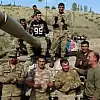 Azerbaycan askerleri, dün kurtardıkları bölgede bulunan Ermenistan'a ait tankın üzerine çıkarak zafer şarkısı söyledi