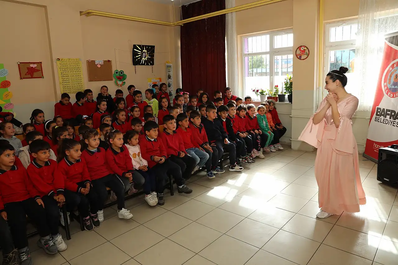 Bafra Belediyesi Tiyatroyu minik yüreklerle buluşturmaya devam ediyor.Çocuk tiyatrosu merkeze gelemeyen öğrencilerin ayağına götürüldü.