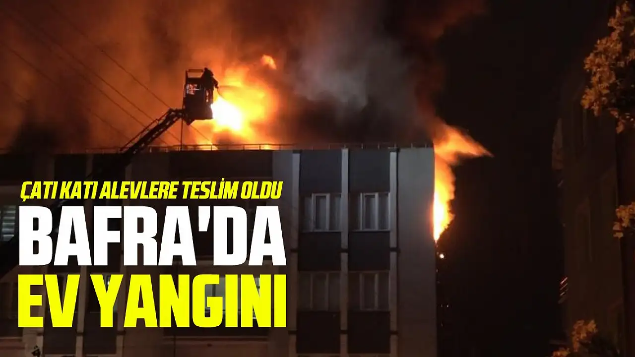 Bafra'da ev yangını: Çatı katı alevlere teslim oldu