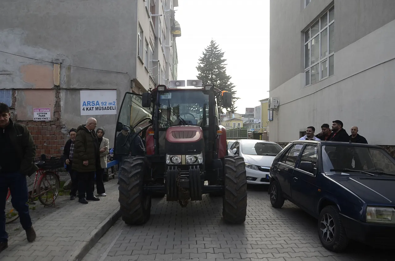Traktörüyle Bafra Belediyesi önüne dayandı