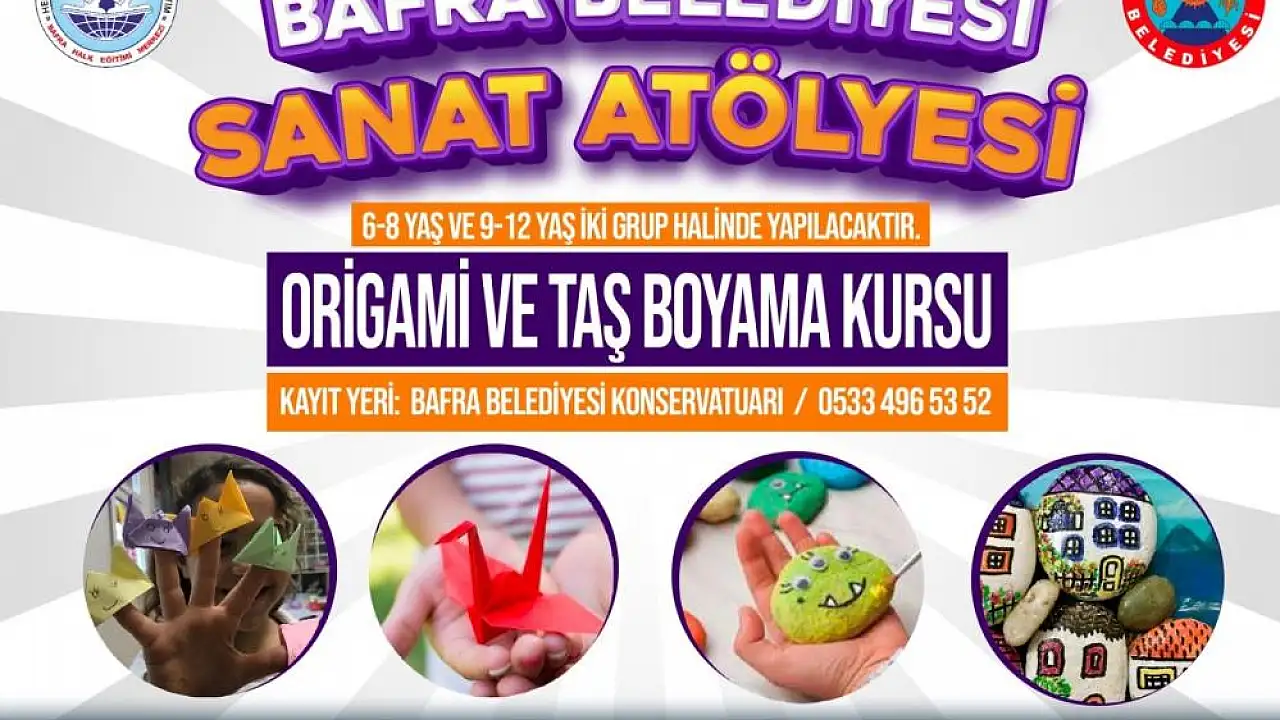 Bafra Belediyesi Kültür ve Sosyal İşler Müdürlüğü ve Bafra Halk Eğitimi Merkezi Müdürlüğü iş birliği ile engellilere için el sanatları kursu, çocuklar ve yetişkinlere yönelik gitar, bağlama, piyano ve keman gibi çeşitli dallarda enstrüman, tiyatro, resim kurslarının ardından şimdi de origami ve taş boyama kursu düzenlendi.