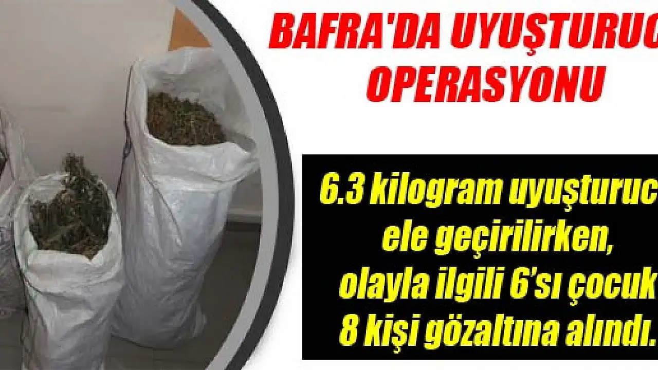 Samsun'un Bafra ilçesinde yapılan operasyonda 6.3 kilogram uyuşturucu ele geçirilirken, olayla ilgili 6'sı çocuk 8 kişi gözaltına alındı.