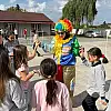 Gönüllü üniversite öğrencilerinden biri, etkinlik sırasında palyaço kostümü giyerek çocuklarla oyunlar oynadı.
