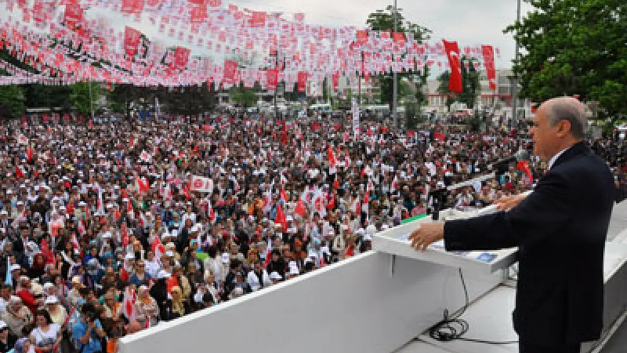 Düzce'de halka seslenen MHP lideri Devlet Bahçeli, Başbakan Recep Tayyip Erdoğan'a sert eleştiriler yöneltti. Bahçeli, "Milletin gözünün içine baka baka çıldırmış ve çılgın projelerle milleti aldatmaya ve kandırmaya çalışıyor. 6 milyona yakın işsiz var. Türkiye genelinde işletmelerin yaşamış olduğu kriz sebebiyle işverenler tarafından işinden çıkarılan insanlar var. Her 4 kişiden birinin işsiz olduğu Türkiye ortada. Bu çözülmelidir. 9 yıl içerisinde zaman zaman, 'Biraz iş bulduk' diyerek, yandaşlarını işe alarak, işsizliği çözdüğünü iddia eden iktidarın söylediklerine millet inanmıyor. İşsizlik ekonomik bir sorun ve sosyal bir yara oldu. Bunu insan odaklı, istihdam dostu üretim ekonomisi politikalarıyla çözeceğiz. Ama Başbakan rant ekonomisinin, sıcak paranın peşinde. Şuraya bir şehir kurabiliriz, oranın arsaları birden değerlenir ve yandaşlarımız önceden alıp sonra da yandaş müteahhitlerle apartman üstüne apartman dikerler. İstanbul'un iki yakasına şehir yapacakmış da orada bilmem ne olacakmış.