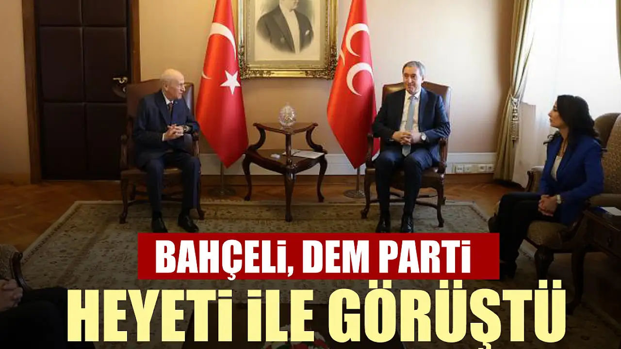 MHP Genel Başkanı Devlet Bahçeli, terör örgütü PKK’nın silah bırakma ve fesih kararının ardından DEM Parti Eş Genel Başkanları Tuncer Bakırhan ve Tülay Hatimoğulları ile görüştü. Bahçeli’ye görüşmede Meclis Başkanvekili Celal Adan ve Genel Başkan Yardımcısı Feti Yıldız eşlik ederken, DEM Parti heyetinde ise Grup Başkanvekilleri Sezai Temelli ve Gülistan Kılıç Koçyiğit de yer aldı. Bahçeli, Meclisteki makamında gerçekleşen görüşmede DEM Parti heyetini kapıda karşıladı. Basına kapalı gerçekleşen görüşme yaklaşık 40 dakika sürdü. Görüşmenin ardından Bahçeli, Bakırhan ve Hatimoğulları’nı yine kapıya çıkarak uğurladı.