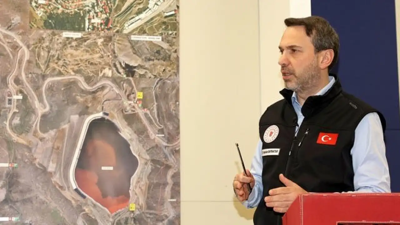 Enerji ve Tabii Kaynaklar Bakanı Alparsan Bayraktar, maden ocağı yerleşkesinde bulunan Kriz Yönetim Merkezi'nde düzenlediği basın toplantısında, haritalar üzerinden arama kurtarma çalışmalarında gelinen son duruma ilişkin bilgi verdi.