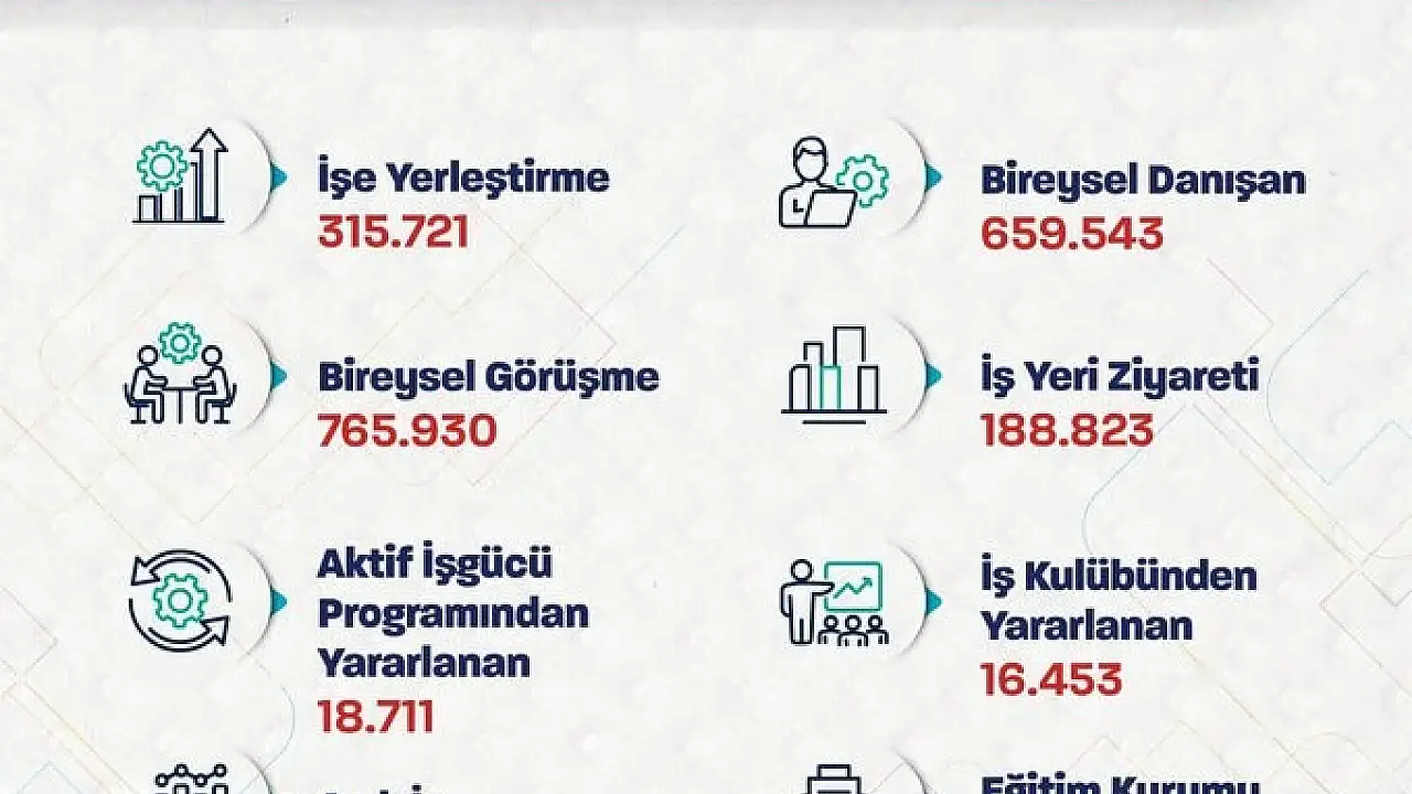 "Ocak-Mart aylarında toplam 315 bin 721 işe yerleştirmeye aracılık ettik. İŞKUR aracılığıyla istihdam destekleyici uygulamalarımıza devam ediyoruz. Ocak-Mart aylarında toplam 315 bin 721 işe yerleştirmeye aracılık ettik. 765 bin 930 bireysel görüşme ve 188 bin 823 iş yeri ziyareti gerçekleştirdik. 532 bin 192 açık iş (işveren tarafından talep edilen-ihtiyaç duyulan eleman) tespit ettik. Ulusal İstihdam Stratejimiz ve Orta Vadeli Program hedeflerimiz doğrultusunda işgücü piyasalarının güncel ihtiyaçlarının karşılanması ve istihdamımızın korunarak artırılması için çalışmalarımızı sürdüreceğiz."