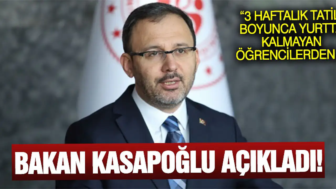 Yurtlarda dezenfekte işlemlerine ağırlık verileceğini belirten Bakan Kasapoğlu, “Üniversitelerin 16 Mart tarihinden itibaren 3 hafta süreyle tatil edilmesiyle birlikte; arzu eden öğrencilerimiz üniversitelerin kapalı olduğu süre boyunca, kendi istekleri ile yurtlardan ayrılabilecekler. Bu 3 haftalık tatil boyunca yurtta kalmayan öğrencilerden yurt ücreti alınmayacak. Bu kararı veren öğrencilerimiz, eğer 75 günlük yıllık izin süreleri bitmiş ise, ‘Özel İzinli' sayılacaklar. Bakanlığımız, bu süre zarfında yurtlarımızın dezenfekte işlemlerine ağırlık verecek. Kredi ve burs ödemeleri ise aynen devam edecek” ifadelerini kullandı.