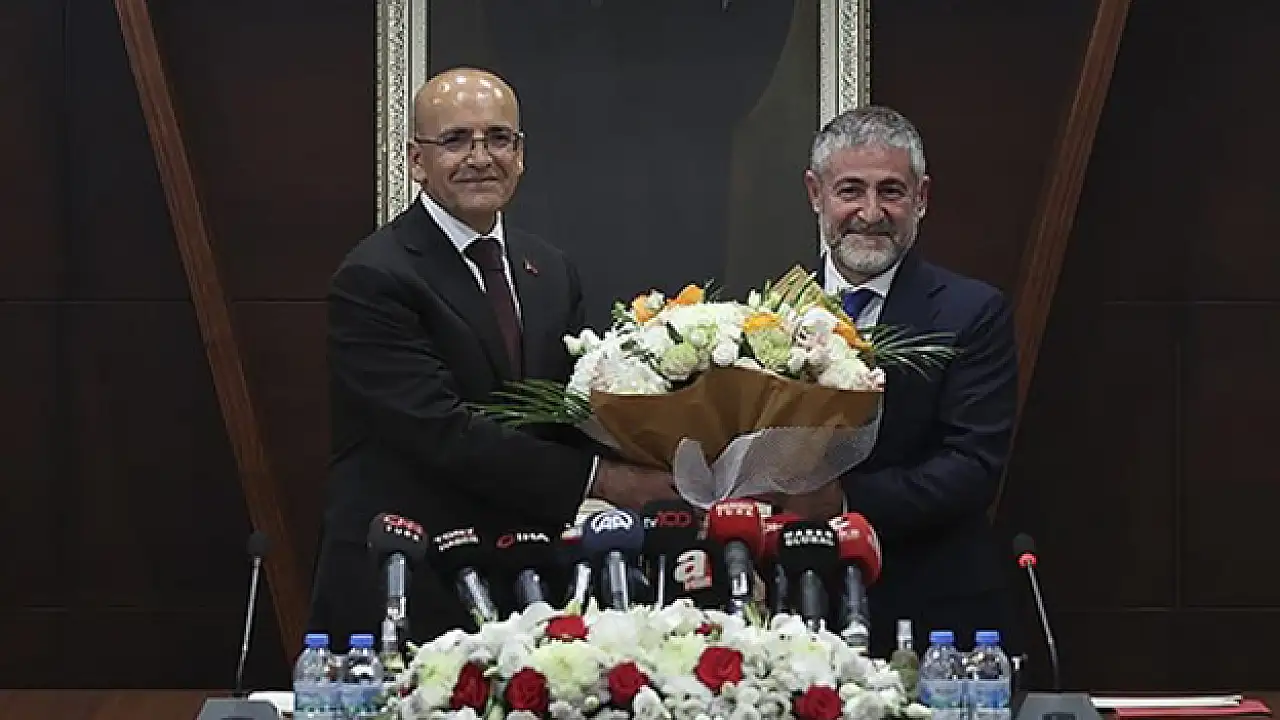 Devir teslim sonrasında iki Bakan da birbirine çiçek takdim etti. Nebati, Şimşek'e "Hoş geldiniz. Allah kolaylıklar versin." dedi.