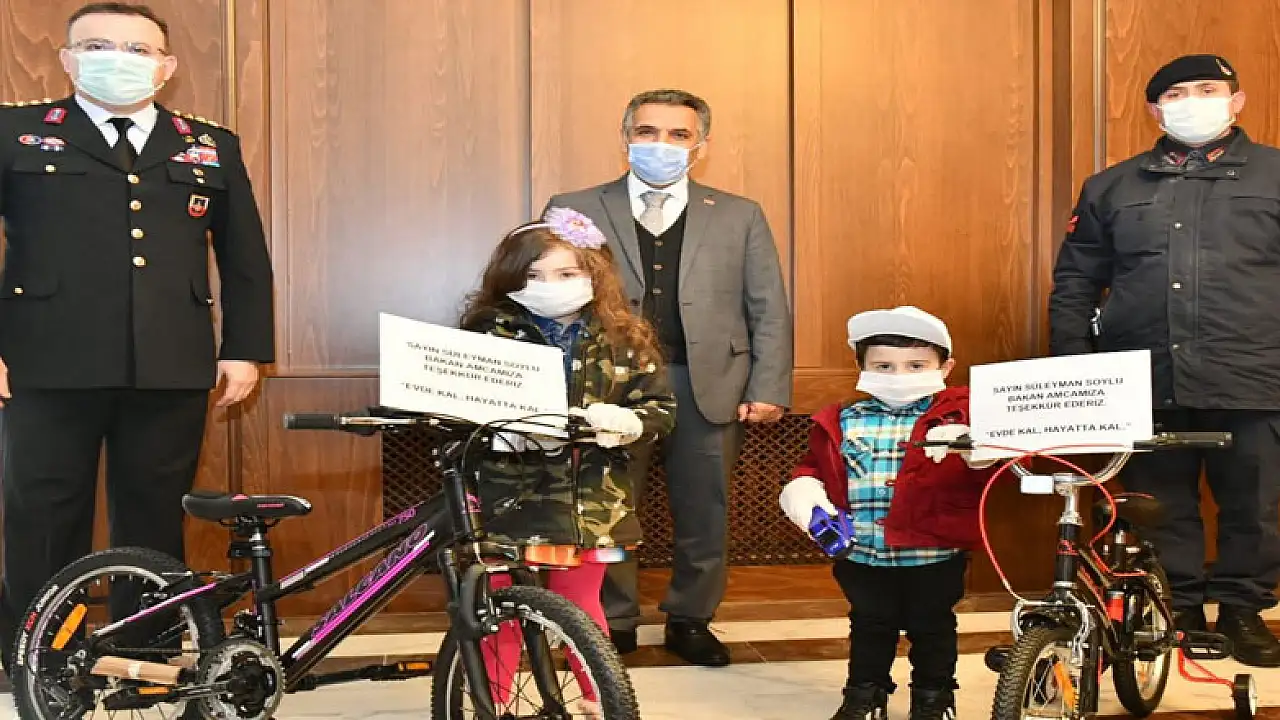 Bakan Soylu'dan 'evde kalın' çağrısı yapan kardeşlere bisiklet hediyesi