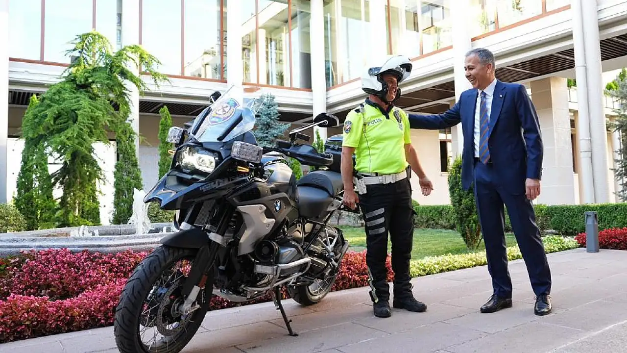 Bir motosiklet sürücüsüne baba şefkatiyle yaklaşıp, kaza yapmaması için nasihat verdiği video ile tanınan Samsun Emniyet Müdürlüğü Trafik Denetleme Şube Müdürlüğü’nde Şahin görevlisi Alper Gökhan Yıldırım’a İçişleri Bakanı Ali Yerlikaya tarafından motosiklet hediye edildi.