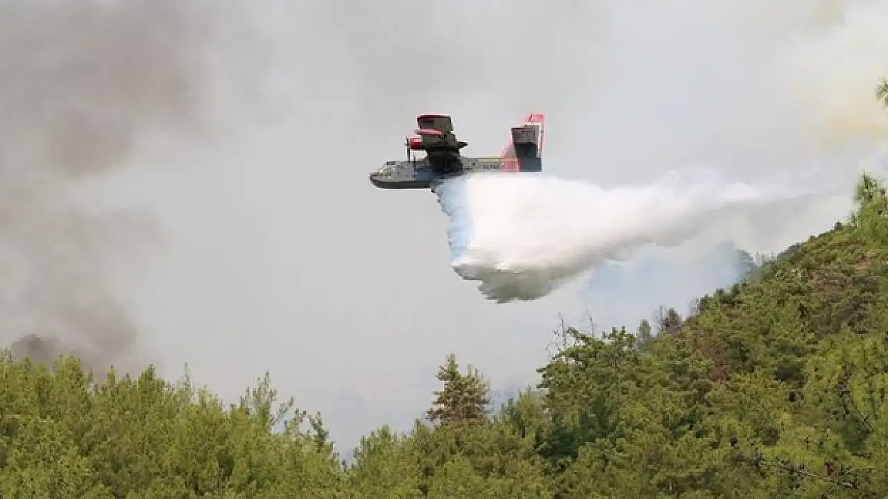 Rüzgarın etkisiyle Gümüşkavak Mahallesi'ne de sıçradığı belirtilen yangına 10 uçak, 11 helikopter, 54 arazöz, 4 iş makinesi ve 363 personelle müdahale ediliyor.