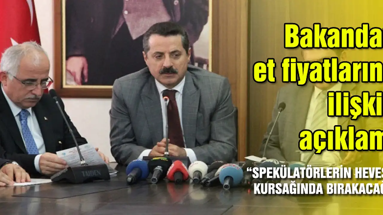 Gıda, Tarım ve Hayvancılık Bakanı Faruk Çelik, "Et fiyatlarıyla ilgili bir kere hayvan varlığıyla ilgili bir sorun yok, fakat Ramazan ayının, yaz aylarının ve hemen akabinde Kurban Bayramının yaklaşıyor olmasından kaynaklanan spekülatif bazı oyuncuların hareketlenmeli var, ama şunu ifade edeyim, bu geçici" dedi.