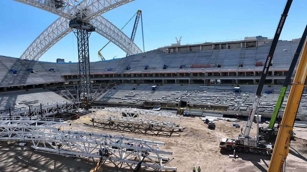 Stadyum inşaatında genel ilerleme seviyesi yüzde 65'e ulaştı. Zemin iyileştirmesi imalatları için yaklaşık 5 bin 500 fore kazık imalatı yapıldı. Betonarme inşaat ve duvar inşası yüzde 90 oranında tamamlandı. Çelik konstrüksiyon imalatında ise yüzde 42 seviyelerine gelindi. Diğer ince imalatlar ise hızla devam ediyor.