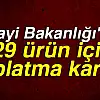 Toplatma kararı alınan 29 ürüne ilişkin liste bakanlığın internet sitesinde yayımlandı