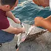 Martıyı görünce şaşkına dönen amatör balıkçı, “Çapari yapıyordum, şansıma oltama martı geldi” dedi.
