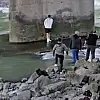 Artvin'in Borçka ilçesinde bir genç balık tutmak için gittiği Çoruh Nehri'nde baraj kapakları açılıp nehrin debisi yükselince köprü ayağında mahsur kaldı.