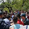 "Sakin olun arkadaşlar. Protesto onun da hakkıdır. Düşüncelerini ifade etmek hanımefendinin de hakkıdır. Provokasyona gerek yok. Lütfen sakin olun. Hanımefendiye nazik davranılsın arkadaşlar. Saygı duyalım lütfen. Provokasyona gerek yok. Mitingimize kaldığımız yerden devam ediyoruz" dedi.