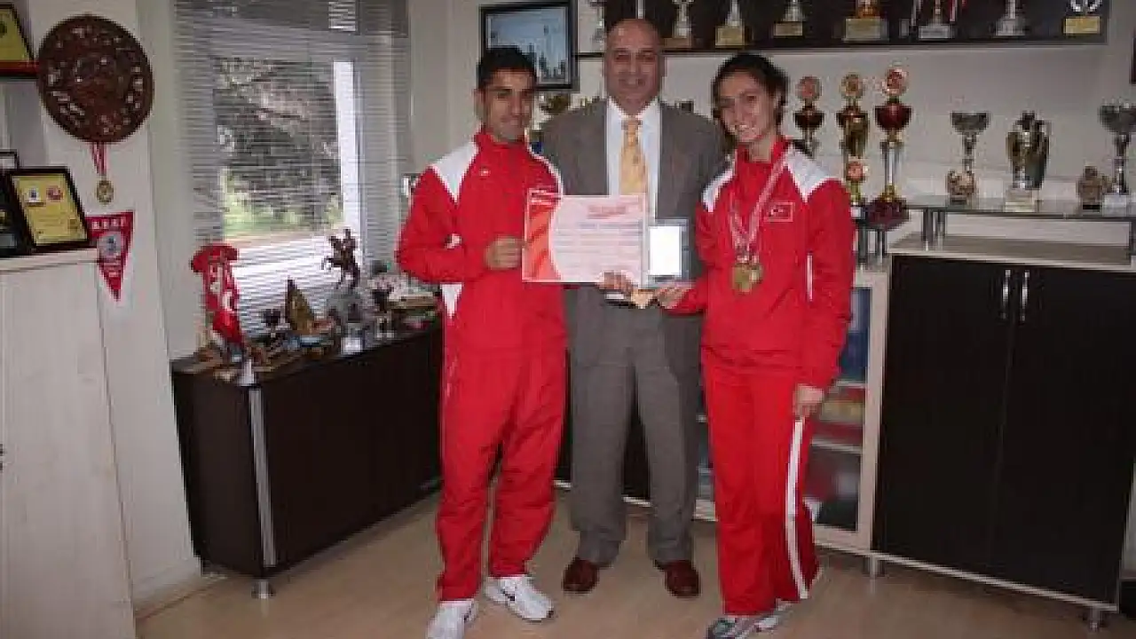 Derece aldıktan sonra Gençlik ve Spor İl Müdürlüğüne ziyarette bulunan sporcumuz İl Müdürümüz Ömer Altunsoy'u makamında ziyaret etti. Altunsoy ziyaretten çok memnun kaldığını belirterek "Sizlerden aynı zamanda Avrupa Şampiyonluğu da bekliyoruz. Bunun için gereken her türlü desteği vermeye hazırırz" dedi. Ömer Altunsoy'un ardından Spor Şube Müdürü Güven Özyurt'u da ziyaret eden sporcumuz Özyurt ile birlikte de hatıra fotoğrafı çektirdi..