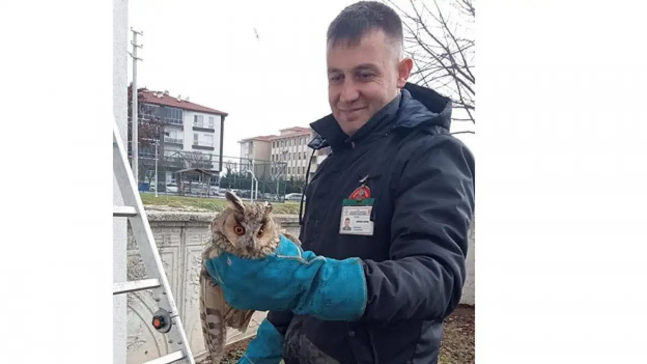 Bolu'da bir dairenin cam balkonunda mahsur kalan baykuş, itfaiye ekipleri tarafından kurtarılarak doğaya salındı.