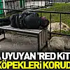 Bankta uyuyan 'Red Kit'i yanına yatan sokak köpekleri korudu
