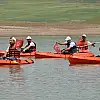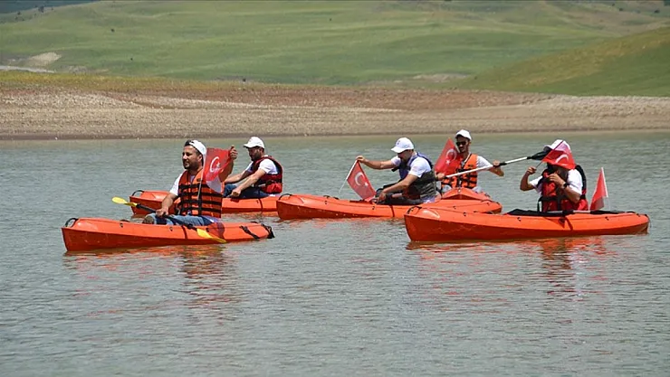 Muş'ta sporun yaygınlaştırılması ve sağlıklı yaşam bilincinin artırılması amacıyla Alparslan 2- Barajı'nda kano etkinliği düzenlendi.
