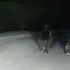 Otomobilin farlarını gören ayılar hızla kaçmaya başladı. O anları cep telefonu kamerasıyla kaydeden sürücü, görüntüleri kayıt altına aldı. Kısa süre sonra ayı ve yavrusu ormana girerek gözden kayboldu.