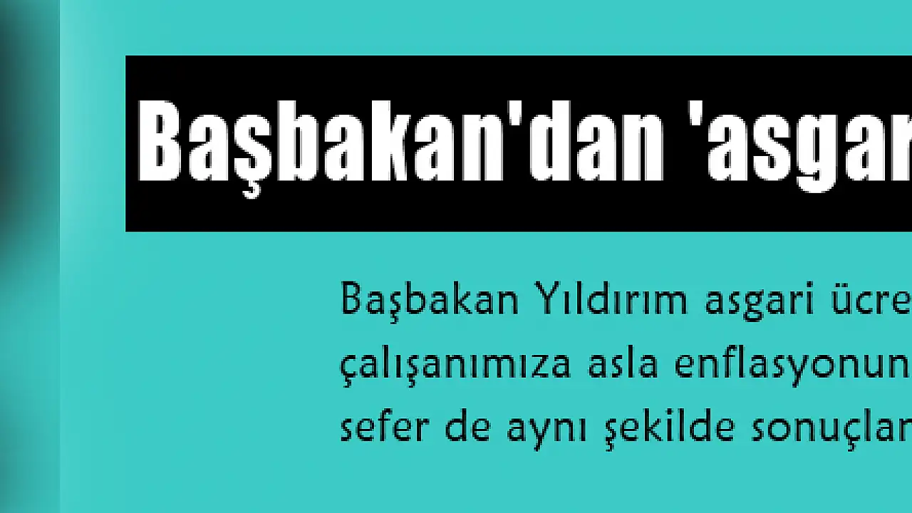 Başbakan Yıldırım asgari ücret için 'Hükümetimiz yıllardan beri çalışanımıza asla enflasyonun altında bir ücret vermemiştir. Bu sefer de aynı şekilde sonuçlandıracak' dedi