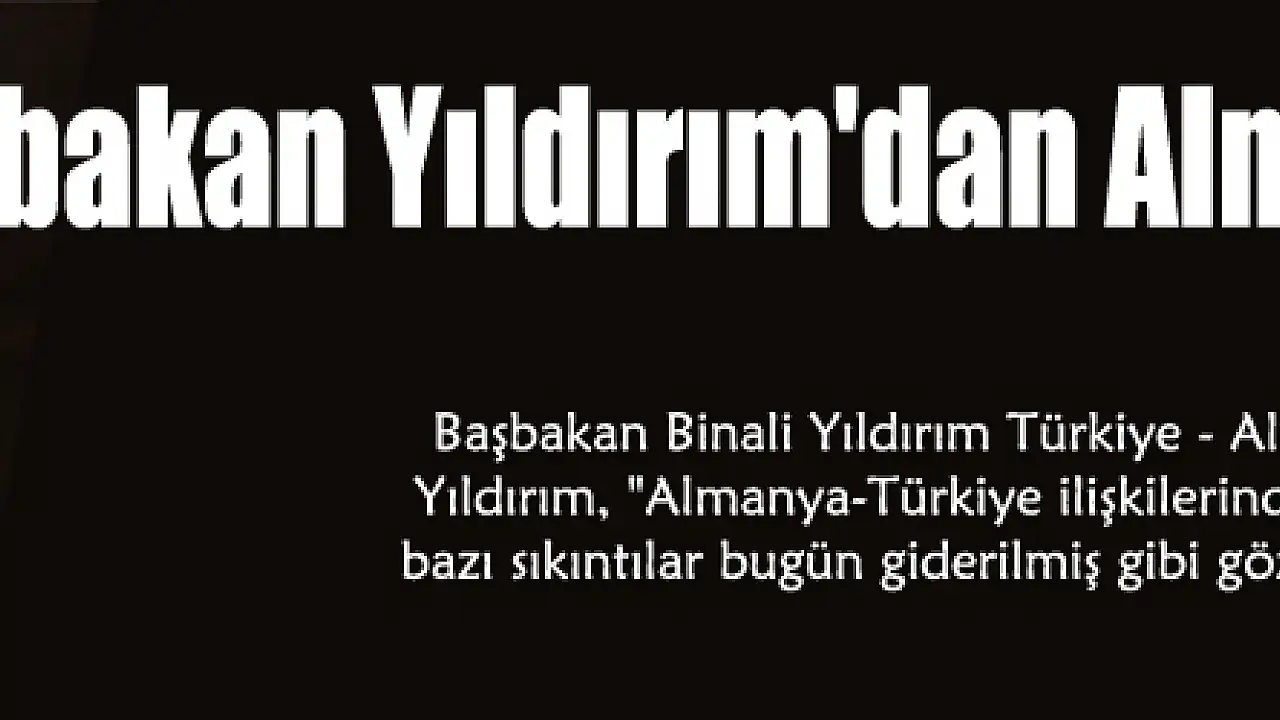 Başbakan Binali Yıldırım Türkiye - Almanya ilişkilerine dair açıklama yaptı. Yıldırım, "Almanya-Türkiye ilişkilerinde geçtiğimiz dönemde meydana gelen bazı sıkıntılar bugün giderilmiş gibi gözüküyor. İnşallah daha iyi olacak." dedi.