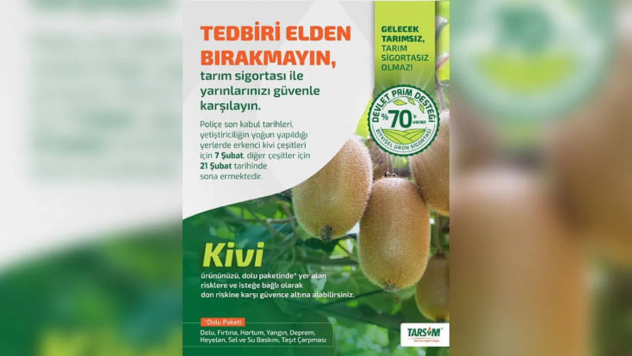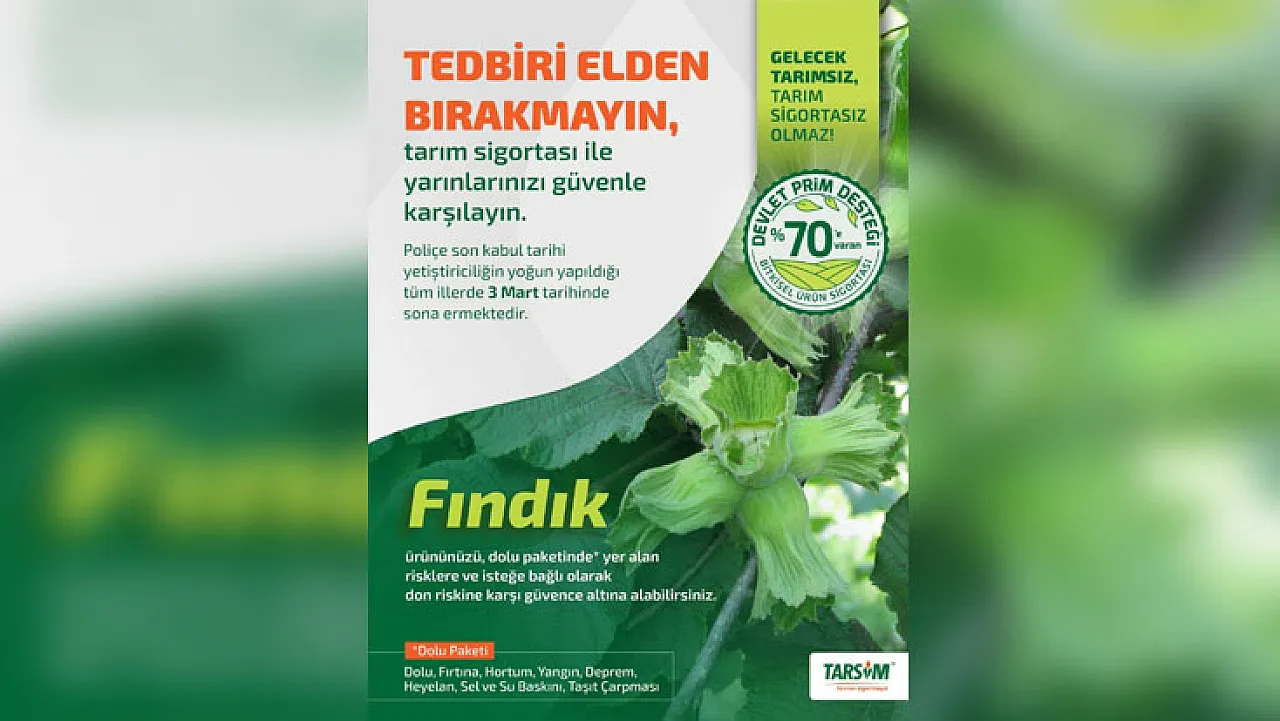 Üreticilere fındık ve kivi ürünlerini için tarım sigortası (TARSİM) yaptırmaları gerektiğini hatırlatan Çarşamba Ziraat Odası Başkanı Muammer Aydemir, sigorta için son başvuru tarihlerini açıkladı. Üreticiler, fındık için 03 Mart 2026 tarihine kadar başvuru yapabilirken, kivi için ise 21 Şubat 2026 tarihine kadar süreleri olacak.