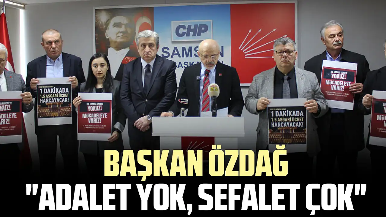 CHP Samsun İl Başkanı Mehmet Özdağ, 2025 yılı için belirlenen 22 bin 104 TL'lik asgari ücreti 'Adalet yok, sefalet çok' diyerek eleştirdi.
