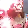 Adana'da bataryası şişen telefon, tamircinin koyduğu yerde patlayarak alev aldı. O anlar ise güvenlik kamerasına yansıdı.