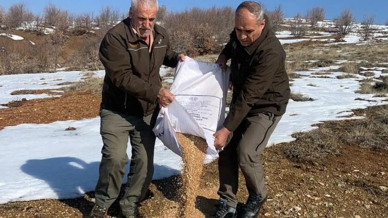 Batman Doğa Koruma ve Milli Parklar Müdürlüğüne bağlı ekipler ve doğaseverler, zorlu kış şartlarında yiyecek bulmakta zorlanan yaban hayvanları için Sason ve Kozluk ilçelerine bağlı kırsal alanlara buğday ve yonca bıraktı.
