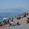 Kurban Bayramı'nın ilk gününde Antalya'da sıcaklık 37 dereceyi buldu. Sahillerde yoğunluk yaşanırken, tatilciler serin sulara koştu.
