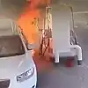 Lüks araç akaryakıt alırken bir anda alevler içinde kaldı, sürücü süratle kaçtı.