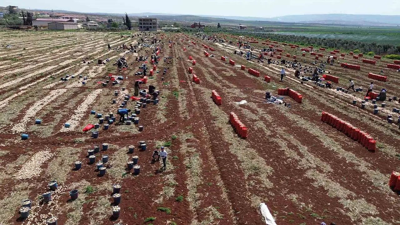 Türkiye’nin en bereketli topraklarından olan ve birçok ürünün yetiştiği Hatay’ın Amik Ovası’nda baharın gelmesiyle ürünler hasat edilmeye başlandı. Reyhanlı ilçesi Bükülmez Mahallesi’nde 45 dönümlük tarlada ekimi yapılan soğanda da hasat başladı. Kuraklığa rağmen rekoltenin yüksek olduğu soğan, tarladan 15 TL ile 20 TL’yi bulan fiyatlarla alıcı buluyor. Hasat edilen soğanların ihracat yoluyla Rusya gibi Balkan ülkelerine gönderildiğini ifade eden üretici Reşit Kaya, Eylül ayına kadar soğan hasadının devam edeceğini söyledi.