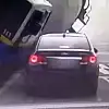Güney Kore’de aşırı süratli olduğu için kırmızı ışıkta duramayan beton mikseri kamyonu, önüne çıkan motosiklete çarpmamak için hafif bir manevra yapınca kontrolden çıktı ve bir otomobilin üzerine devrildi. Korkunç kazada, otomobil adeta kağıt gibi dümdüz olurken, içindeki 3 kişi de feci şekilde öldü.