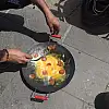 Beton zeminin üzerinde sucuklu yumurta pişirdi