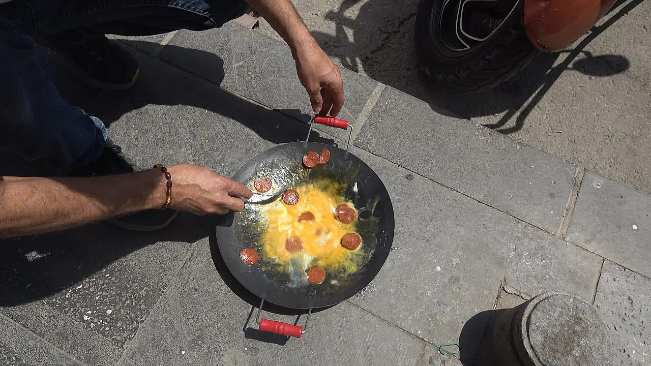 Kavurucu sıcakların etkisini sürdürdüğü Kilis'te hava sıcaklığı 42 dereceyi aştı. Sıcaklığın etkisini göstermek isteyen aşçı Erdoğan Aktaş, betonun üzerine tava koyarak yumurta pişirdi. Güneşin etkisiyle dakikalar içinde pişen sucuklu yumurta, servise hazır hale geldi.