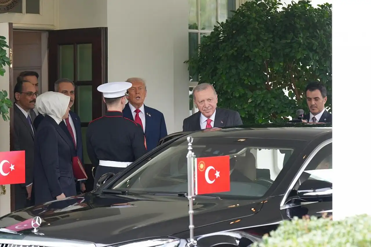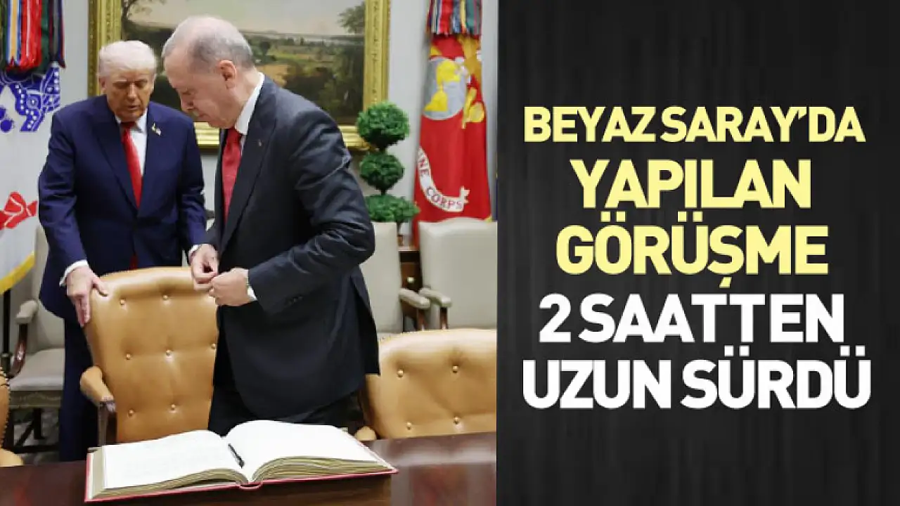 Cumhurbaşkanı Recep Tayyip Erdoğan ile ABD Başkanı Donald Trump arasında Beyaz Saray’da yapılan görüşme sona erdi. Görüşme, 2 saat 20 dakika sürdü. Trump, görüşme sırasında Cumhurbaşkanı Erdoğan’ın anı defterini imzalamak için oturacağı sandalyeyi çekerek jest yaptı. Görüşmenin ardından Trump, Cumhurbaşkanı Erdoğan’ı makam aracına kadar uğurladı. Trump’ın ayrıca uğurlama sırasında Dışişleri Bakanı Hakan Fidan, MİT Başkanı İbrahim Kalın, Enerji ve Tabii Kaynaklar Bakanı Alparslan Bayraktar ve diğer yetkililer ile ayaküstü sohbet ettiği görüldü. En son 2019'da bir araya gelen Erdoğan ve Trump, yaklaşık 6 yıl sonra ilk kez görüşmüş oldu.