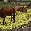 Sebze ve Meyve Halinde Biber fiyatları iyice düşünce vatandaş çareyi satmaya getirdiği biberleri Hal çevresine dökmekte buldu. Bu işe ise en çok inekler sevindi.
