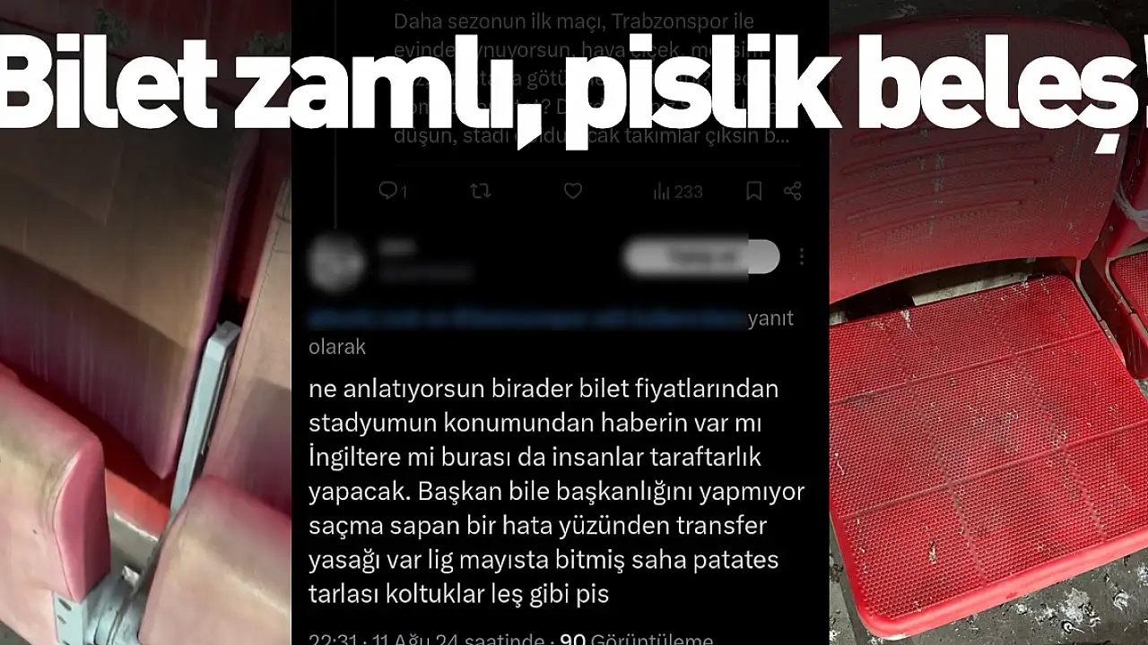 Sosyal medya hesaplarından paylaşım yapan bir taraftar, "Sezonun ilk maçı, en ucuz bilet 400 TL ama taraftarın oturacağı koltuklar tam bir leş. Gerçekten yazık. Bunu taraftara layık gören herkesi kınıyorum." ifadelerini kullandı.