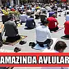 Samsun'da cuma namazında cami avlularına sığmayan cemaat yol kenarlarına ve refüjlere taştı.
