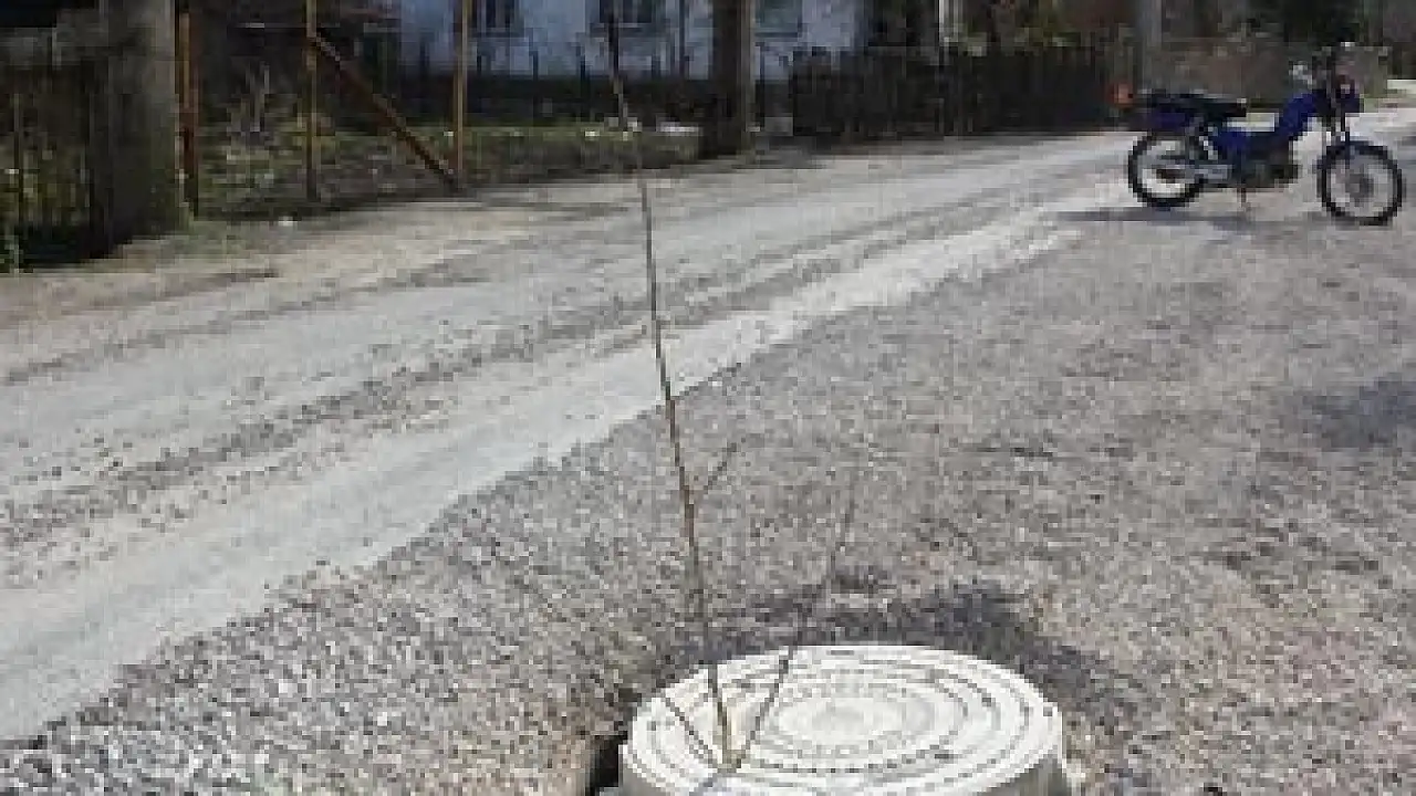 Yolun ortasında bulunan logar kapağına takılan ağaç dalı dikkat çekerken yolu kullanan sürücüler için ise kırık logar kapağı tehlike saçmaya devam ediyor.