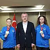 Kocaeli Büyükşehir Belediye Başkanı Tahir Büyükakın, Budapeşte’de düzenlenen Büyükler Dünya Karate Şampiyonası’nda Türkiye’yi gururla temsil eden Tuba Yakan (Yenen) ve Fatma Naz Yenen kardeşler ile Kağıtspor Kulübü Başkanı İbrahim Ercin, Kağıtspor Karate Antrenörü Mesut Kolaylı’yı makamında ağırladı. Tuba ve Fatma Naz kardeşler, girdikleri çok sayıda şampiyonada elde ettikleri başarılarla herkesi gururlandırdı. 24-29 Ekim tarihinde Macaristan’ın başkenti Budapeşte’de düzenlenen 26. Büyükler Dünya Şampiyonası’nda 55 kilogram kumite dalında altın, 61 kilogram kumite dalında gümüş madalya kazanan sporcuları makamında ağırlayan Başkan Büyükakın, "Cumhuriyetimizin 100. yılında elde ettiğiniz bu büyük başarı için sizleri canı gönülden kutlarım. Sizler elde ettiğiniz bu başarıyla hem bize hem de Kocaeli halkına çok büyük gurur yaşattınız. Türkiye Cumhuriyeti’nin yeni yüzyılına girdiğimiz bu günlerde Tuba ve Fatma gelecek yüzyılın örnek sporcularısınız. Sizden sonra gelen nesillere neler başarabileceklerini göstermiş oldunuz. Hedefi hep daha da yukarıya çıkardınız. Sizleri ve antrenörlerimizi canı gönülden kutluyor, başarılarınızın devamını diliyorum" ifadelerini kullanarak genç sporcuları tebrik etti.
