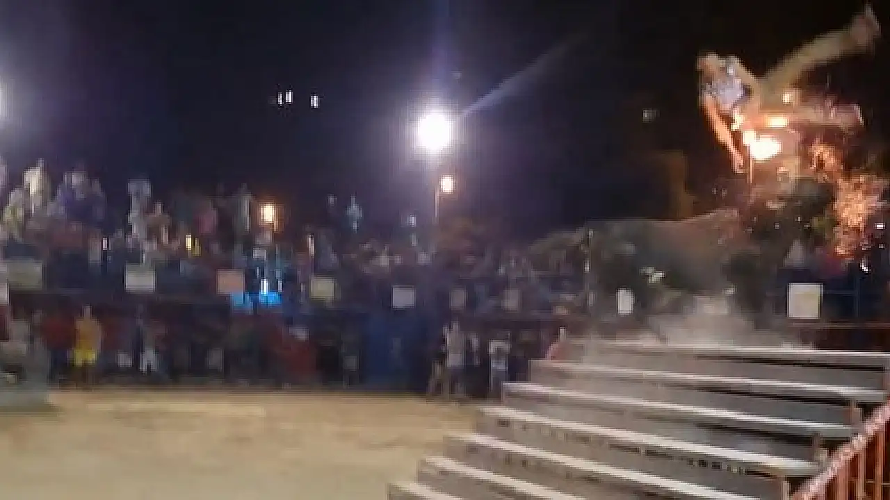 İspanya’da bir halk etkinliğinde arenada çekilen görüntülerde, boynuzları ateşe verilen boğanın, insanlar tarafından sürekli taciz edildiği görülüyor. Son tacizse yerden kum alıp hayvana atan bir gençten oldu. Oldukça öfkelenen boğa, hızla üstüne gittiği genci bir boynuz darbesiyle havaya kavrayıp fırlattı. Yaralanan gencin yardımına ise çevredekiler koştu.