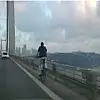 Motorsuz taşıt kullanımının yasak olduğu Boğaziçi Köprüsü'nde bisikletiyle karşı yakaya geçmeye çalışan bir kişi amatör bir kamera tarafından görüntülendi.
