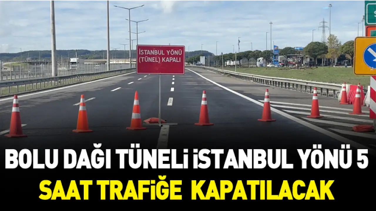 Anadolu Otoyolu'nun Bolu Dağı Tüneli İstanbul istikameti, yapılacak kaplama çalışmaları nedeniyle 31 Ekim'e kadar hafta içi her gün 5 saat süreyle ulaşıma kapalı olacak.
