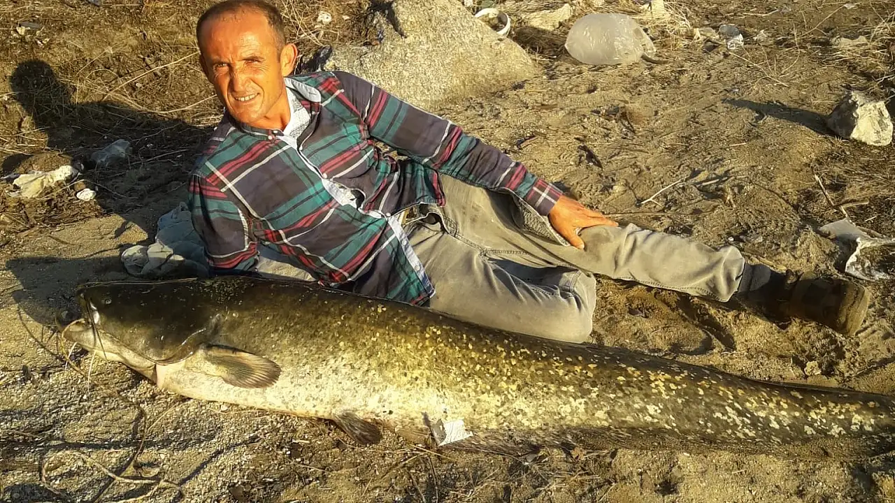 Manisa'nın Köprübaşı ilçesinde amatör balıkçı Öner Hatipoğlu, Demirköprü Baraj Gölü'nde 62 kilogram ağırlığında, 1 metre 70 santimetre uzunluğunda dev bir yayın balığı yakaladı.